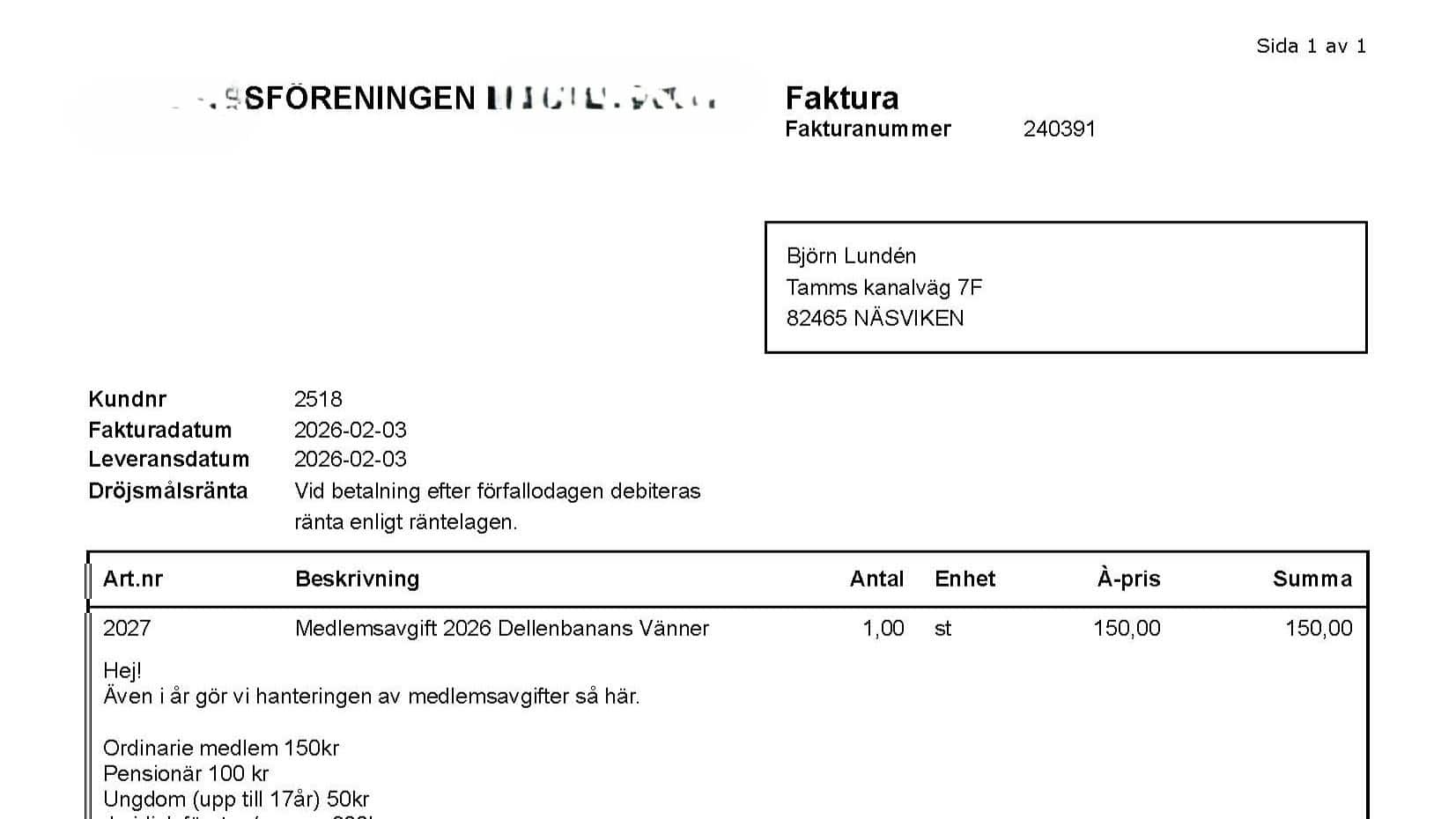 När en ideell förening begär in medlemsavgifter handlar det inte om en sådan överenskommelse. Medlemskapet är frivilligt, och medlemsavgiften är ett villkor för att fortsätta vara medlem – inte en civilrättslig skuld. Därför bör föreningen inte skicka en faktura. I stället bör rubriken vara Avi om medlemsavgift eller något liknande. Annars riskerar man att ge intryck av att mottagaren har en betalningsskyldighet i juridisk mening.